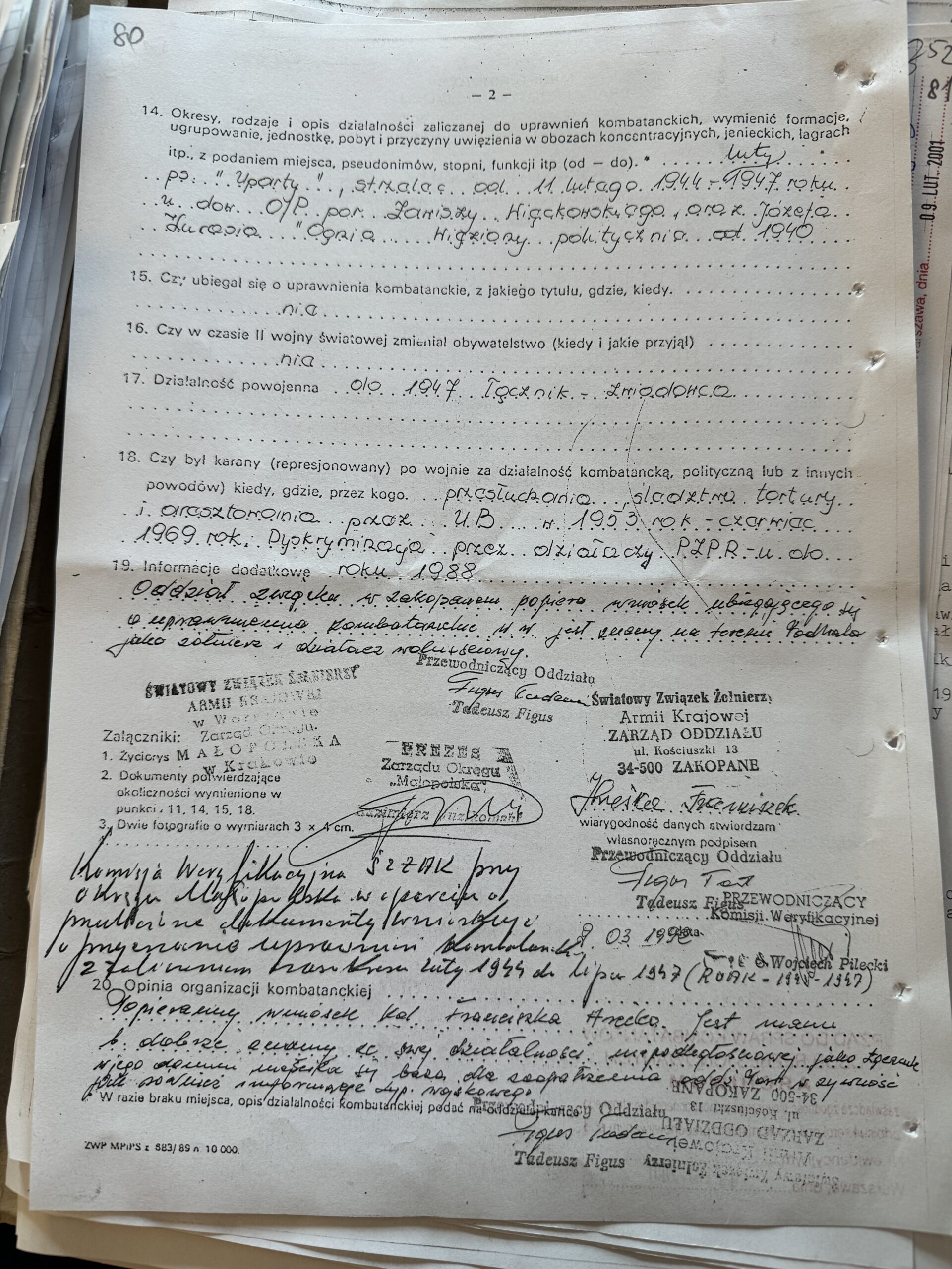 Figus jako przewodniczący te dane potwierdzał a Warszawka nie weryfikując prawdziwości tych danych przyznawała im awanse, odznaczenia i profity należne dla żołnierzy AK.