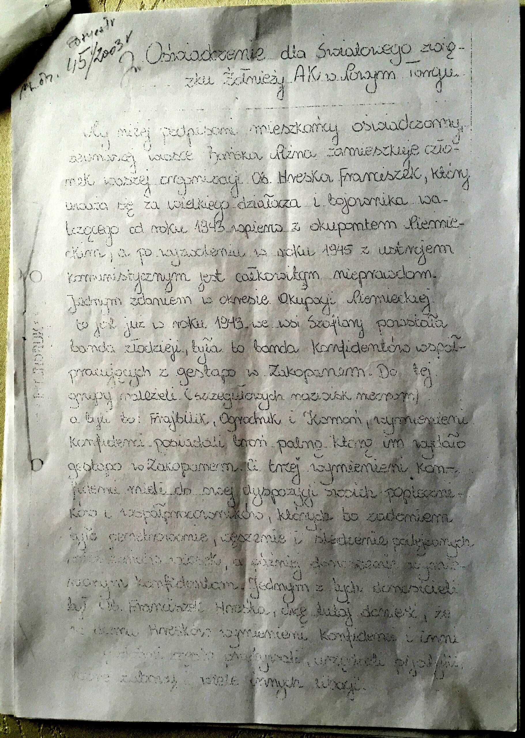 Poniżej też skarga mieszkańców gminy Szaflar na grasującego i ciągle coś obiecującego Hreśkę.
