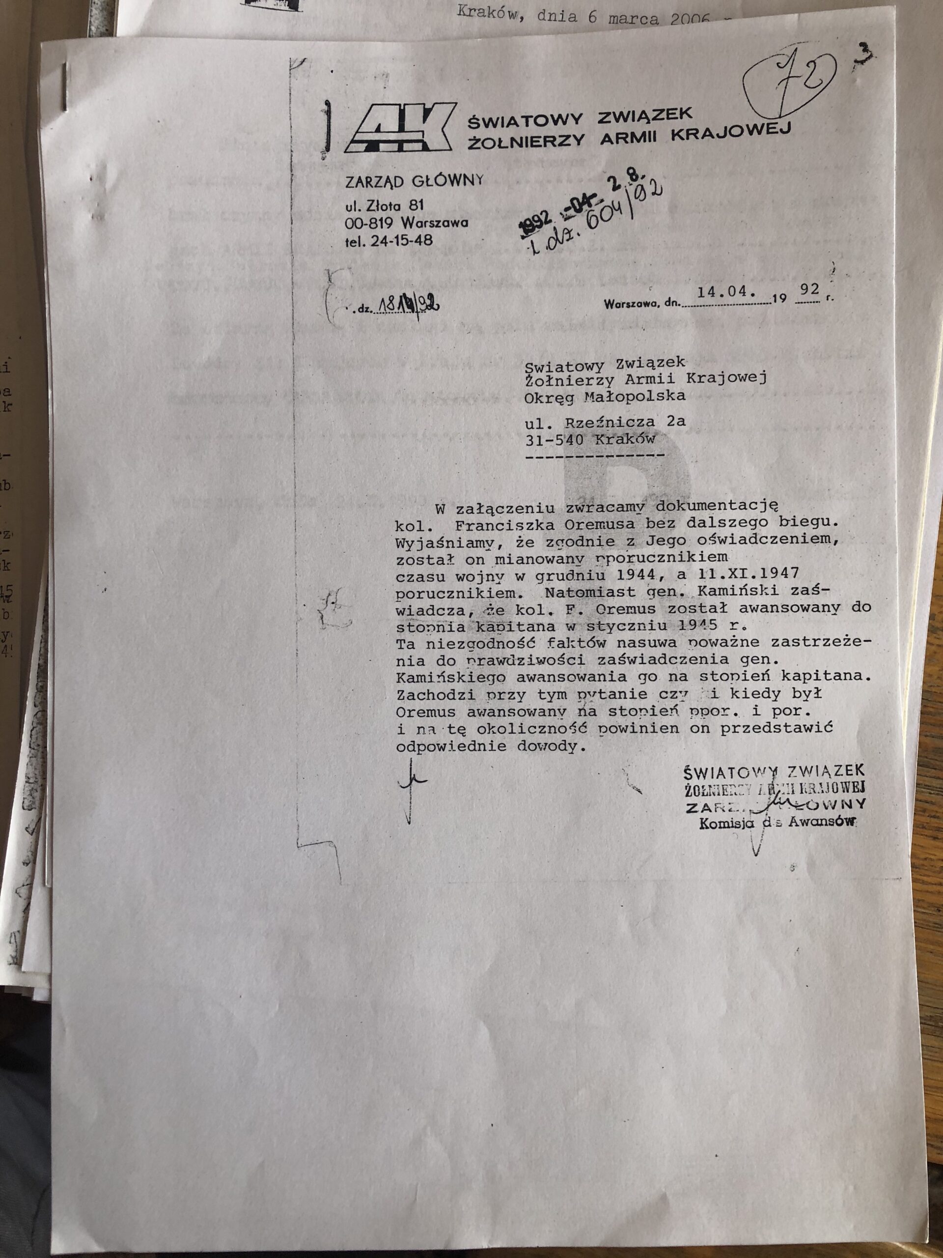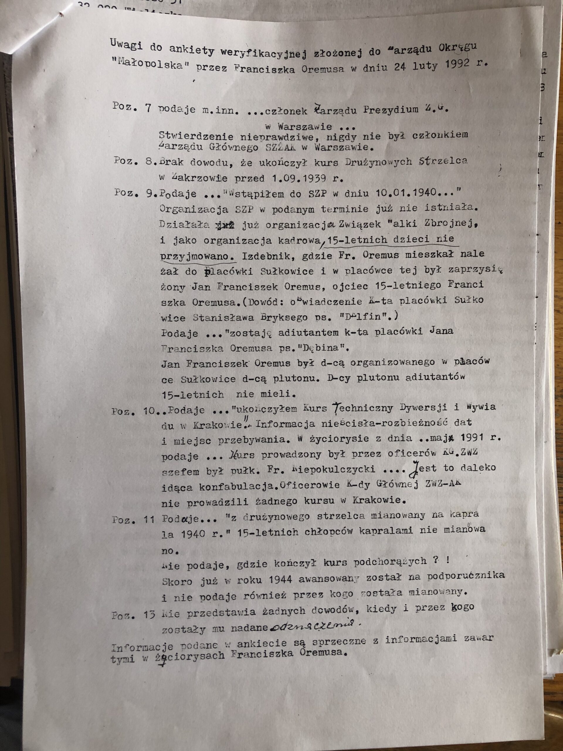 Franciszek Oremus „Sztajer” to następny przypisujący sobie większość zasług wszystkich żołnierzy AK. Był specjalistą od załatwiania awansów i odznaczeń dla żony „Ognia” i jej syna Zbigniewa. Odrzucony przez środowisko AK przeszedł na stronę ogniowców.